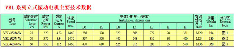 VBL系列立式振动电机能在一定范围内无极调节激振力大小,只需调整固定激振块(下)和调节激振块(上)在水平面上投影的夹角就能改变激振力大小,出厂时,激振块夹角调节为90度,当上下激振块夹角大于90度时,其振动合成力变小,反之则变大。